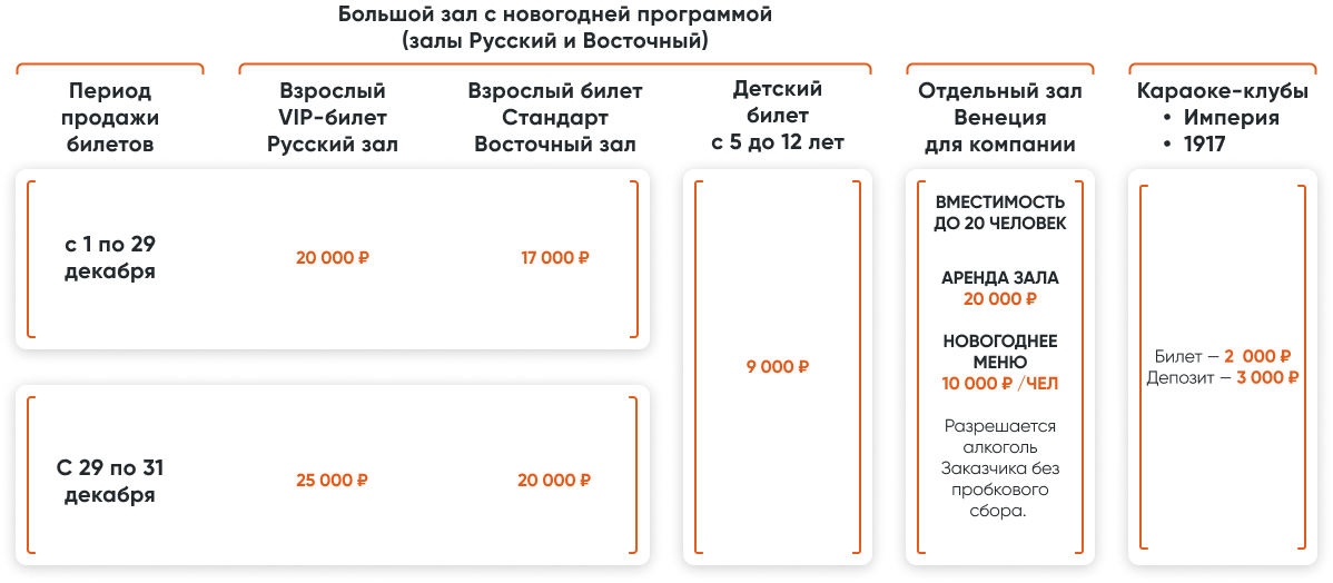Гость располагается ближе к артистам, более комфортная рассадка за столами, декорирование стола, отличия в меню.